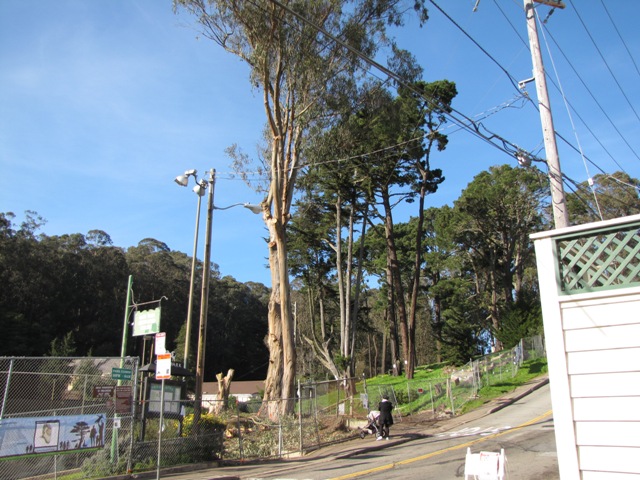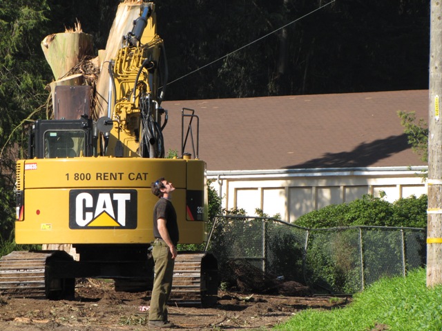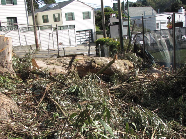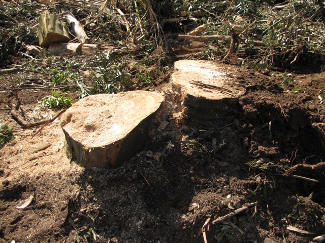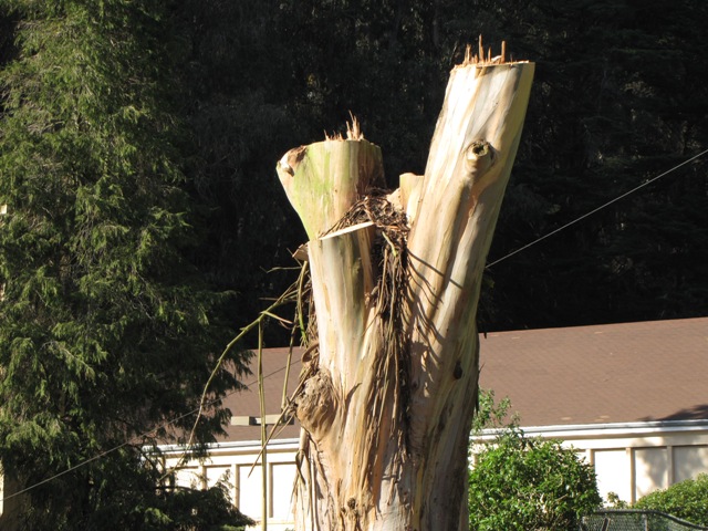 It’s nearly finished now. The line of grand old eucalyptus trees are mostly stumps. Here are some photographs from Days 4 and 5 of the tree-demolition.