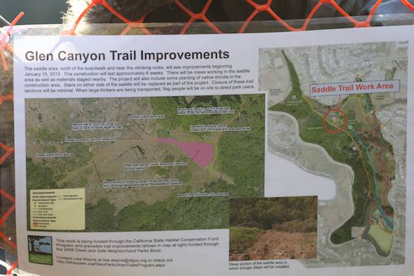 The trail work has begun in Glen Canyon Park. Here are some photographs: